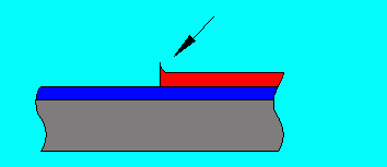Here after the tape is removed there is a raised edge that may produce a problem later on. This edge is hard to remove without contaminating the initial layer of paint.
