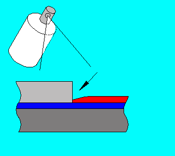 Here is the preferred direction of aiming the paint spray. There is no build up of the second colour against the masking material.