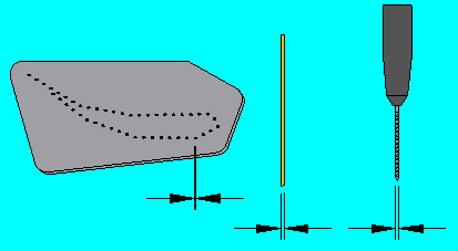 Again with the Dremel tool I have roughly cut off most of the material not needed. After that we finish the rear edge of the wing with files. Do not trim the ends of your piece yet. I found it more accurate to completely finish the rear edge first before scribing the lines for the ends. (Right)After cutting the rear edges will be brought together