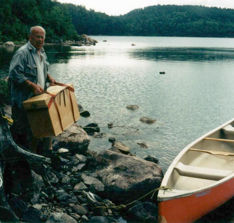 past a rushing water fall and put into the lake, right at the still maintained dam. (Note: since 1997, the portage has suffered from blow-downs. As