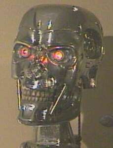 A couple of shots of the T800 head 1:1 scale. Micro switch behind the head turns the eyes on after his head pivots up. Everyone should have one.