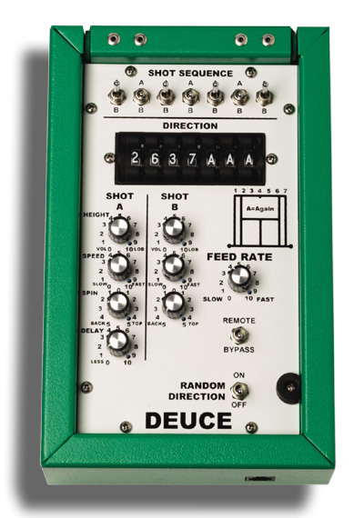 The DEUCE is great for practicing 2-shot combinations such as a volley followed by a lob OR topspin followed by backspin. The Shot Delay feature allows the player time to return to the baseline after going to the net at the end of a drill. You can purchase this machine now and buy upgrades later that turn it into the the GENIE or the PLAYMATE PC. KEY FEATURES