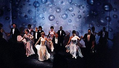 The show, DQ'97, ran for 10 days at a small (600 seat) theatre in Toronto. The show is a fundraiser for Casey House, an AIDS hospice in Toronto. Over $100,000.00 was raised. We employed a combination of Studio Colors, Cyberlights, 20 light MR16 blinders w/ scrollers, as well as conventional pars, lekos and fresnels. My lighting programer was Ed Wall. The production manager was Paul Jessop, The director was Les Porter.