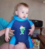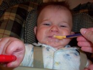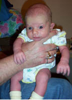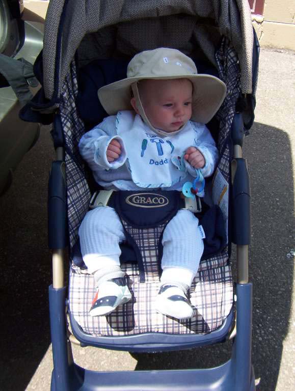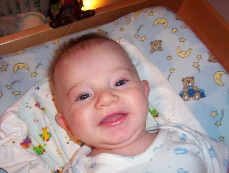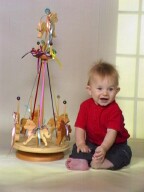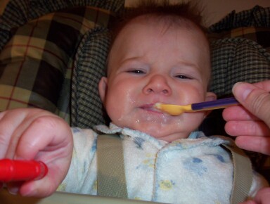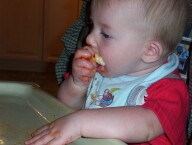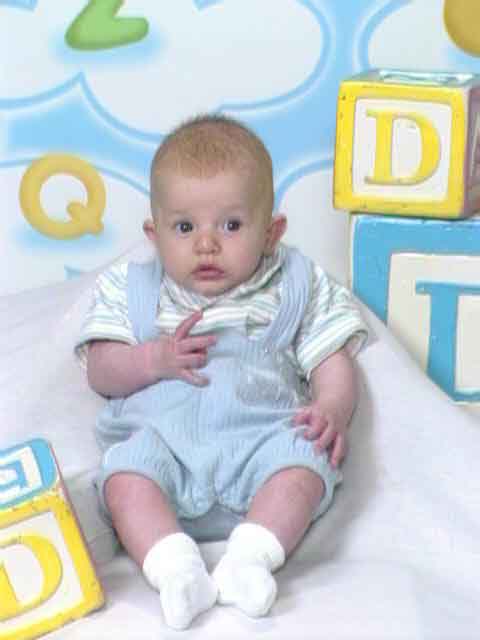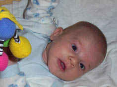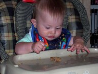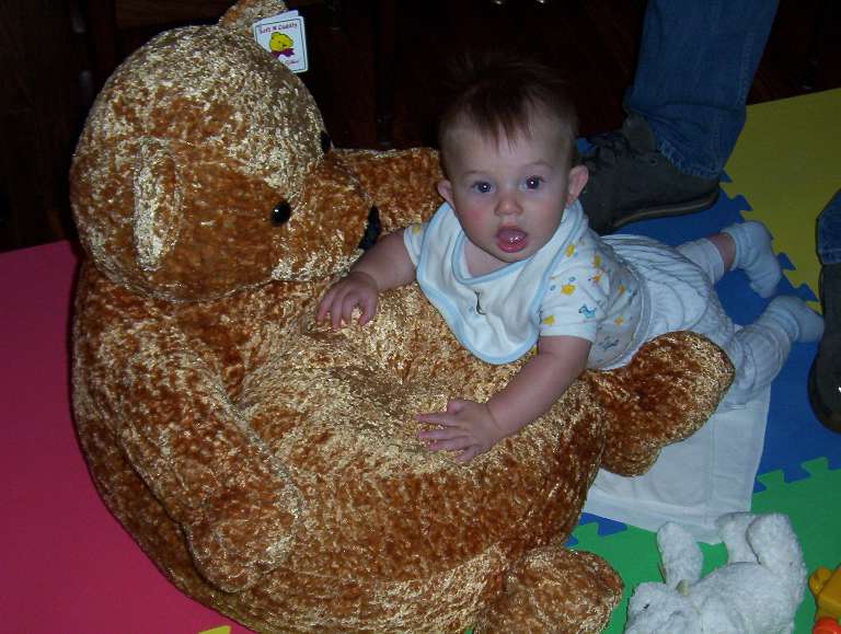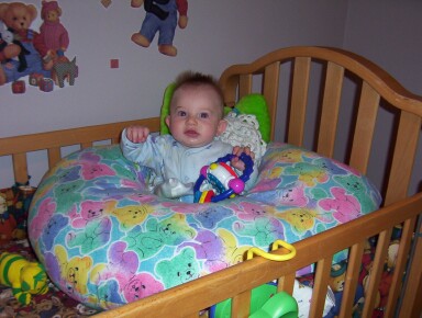 Now I can sit up by myself and play with my toys. I am trying to eat grownup food and still hate baby food. I love pasta, cantelope, muffins and bananas! |