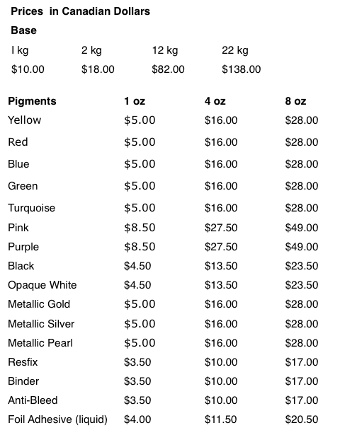 lkg of Base + loz of Yellow, Red, Blue, Black, White and Resfix.