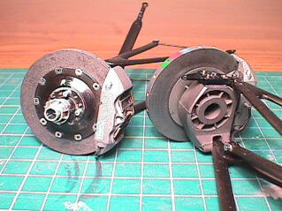 Below left: frontal view of a partially-finished right-front suspension