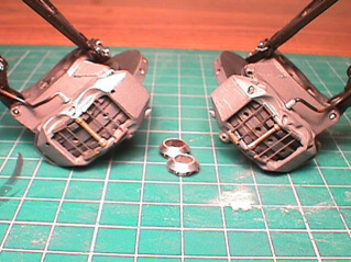 Below left: brake calipers, pads and fixtures are clearly visible