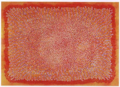 Acrylic and gauze on canvas 234 cm x 110 cm (7.7 ft. x 3.5 ft.) [Collection of the National Gallery of Canada]