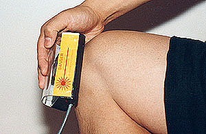 ILLUSTRATION: The application of Cyton's infrared optical head to treat arthritis on ankle