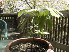 Catalog # 3 - A very ambitious plant with most attractive emerald-green, heart shaped leaves. Abundant white flowers measuring over 1" (2.5cm) across. The tree is most famous for producing the resin, which when fossilized, is the source of neo-teopics Amber. |