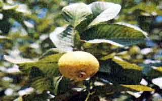 Catalog # 17 - A small fruit tree with green to red foliage, depending on the amount of sun. Small white flowers bloom followed by the fruit pictured and is used in tropical juices . The leaves are digested in a tea form as an antacid.