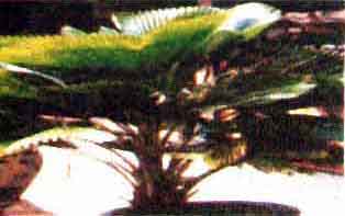 Catalog #30 - A magnificently showy palm with a short structure, its slim solitary trunk is crowned by a pleated network of green fronds which are roundish and toothed. Dazzling when in fruit, it is a prized ornamental.