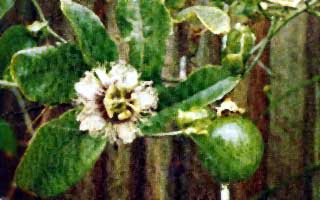 Catalog # 79 - By far one of the worlds most exotic vines. Ideal for indoor -outdoor use as a design piece. Thrives beautifully under low light winter -indoor conditions and regains it's lustrous deep green leaves for many more seasons. When adapted to outdoor conditions various swells of liquid appear at the base of the leaf stem. This will attract neighborhood butterfly and pollen gathering insects, which will pollinate the potential passionflowers. The flowers are a beautiful sight to behold, and in most South American countries have a deep religious significance. Please see our catalogue for other passion fruit variety. |